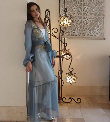 Hand embroidered organza abaya with the addition of crystal stones \n \nFree size